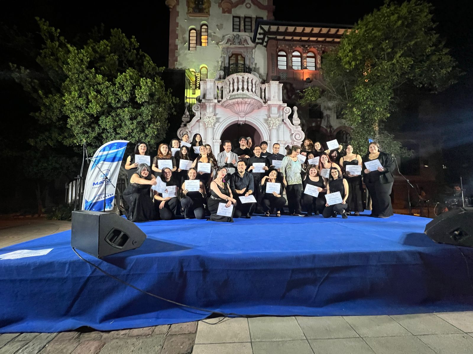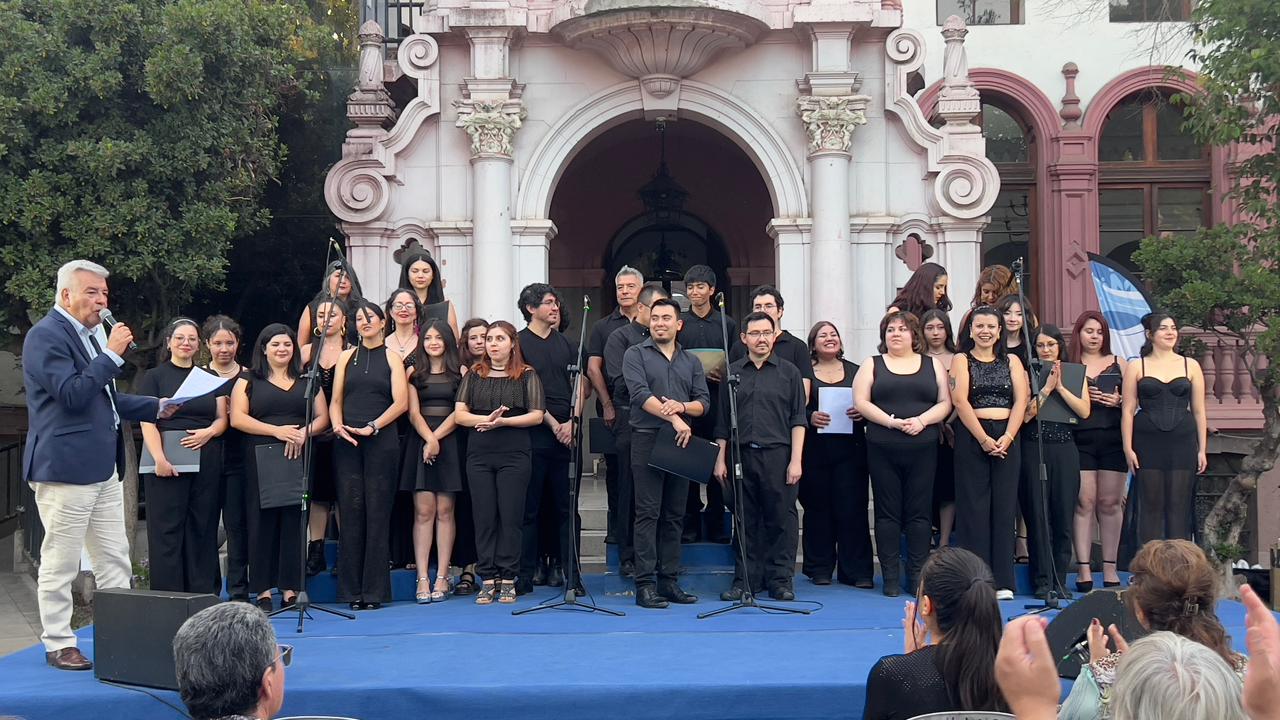 La actividad tuvo lugar en el frontis del castillo municipal y marcó el cierre del año formativo, permitiendo a los estudiantes mostrar en escena los aprendizajes adquiridos en trabajo vocal y musical.