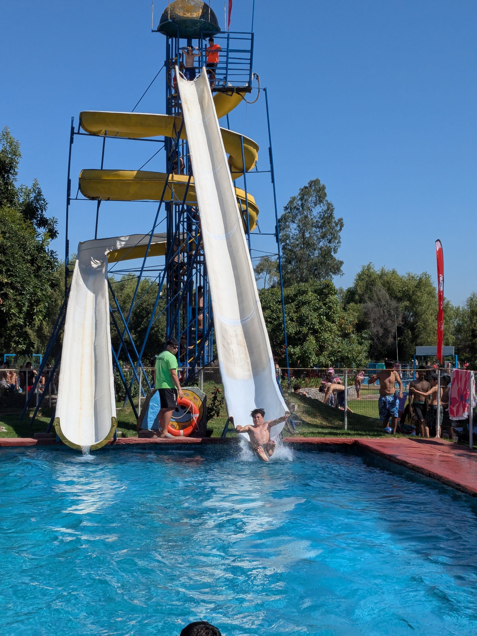 El recinto contó con una completa oferta recreativa que incluyó cinco piscinas habilitadas, toboganes acuáticos, concursos, bailes, juegos infantiles y actividades de animación, lo que permitió que niños, jóvenes y adultos disfrutaran a concho de ambas jornadas en un entorno natural y familiar.